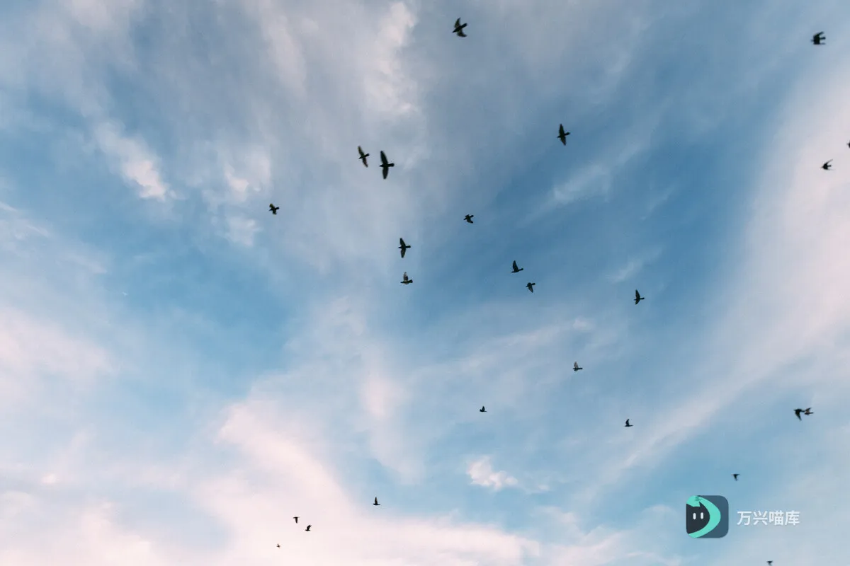 一群鸟飞过蓝天