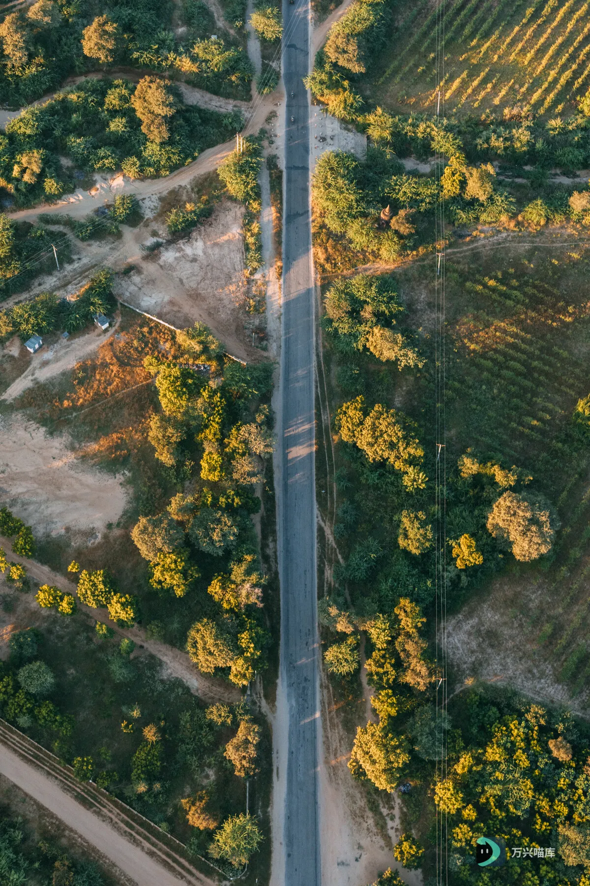 一架高空无人机沿着道路拍摄