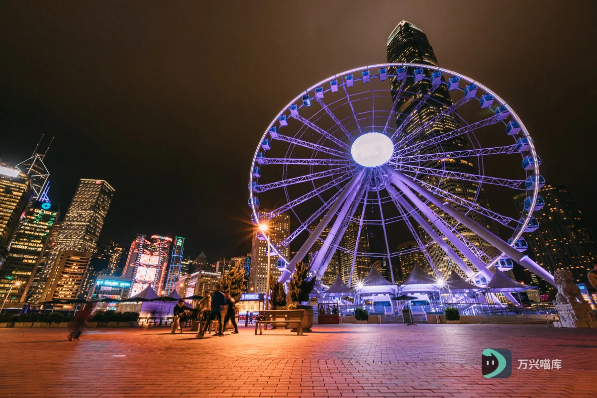 香港的摩天轮在夜间旋转