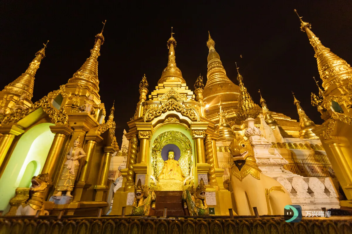 缅甸仰光的一座大宝塔在夜间点亮