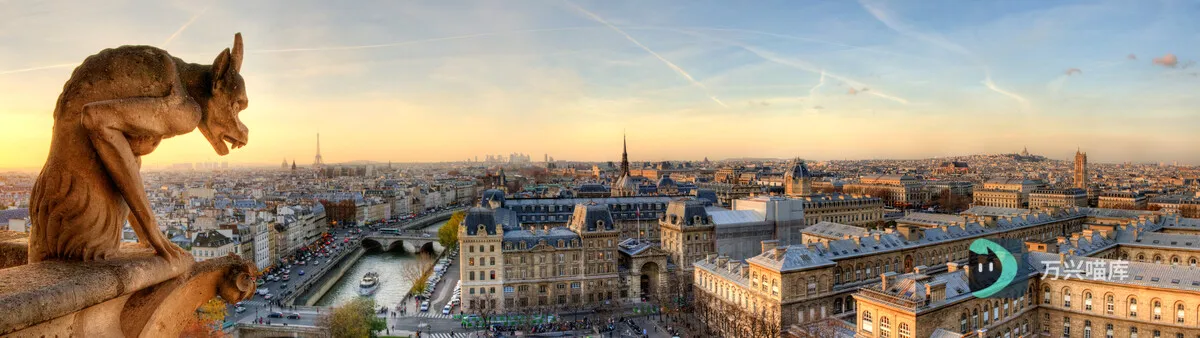 巴黎圣母院的石像俯瞰城市和塞纳河